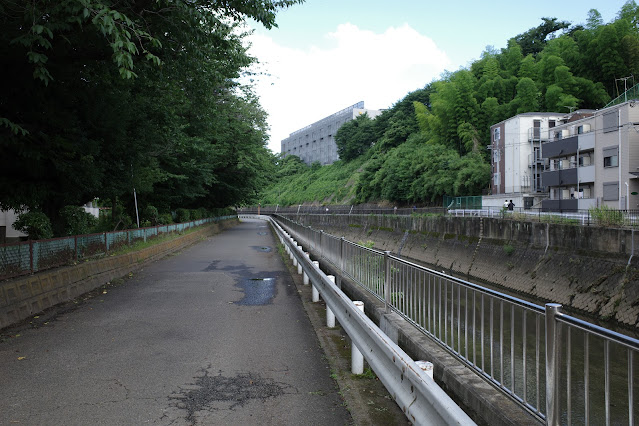 ローソンのところで川沿いの細道に入ります、こちらが古道です。迂回してますから、この川は鶴見川水系ということになります。